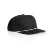 Single panel at front, quick dry fabric, plastic snapback, tonal under-peak lining, mesh structure support, contrast matte nylon rope at front of crown