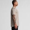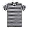 Crew neck, varied stripe width across colors, neck ribbing, side seamed, shoulder to shoulder tape, double needle hems, preshrunk to minimize shrinkage.